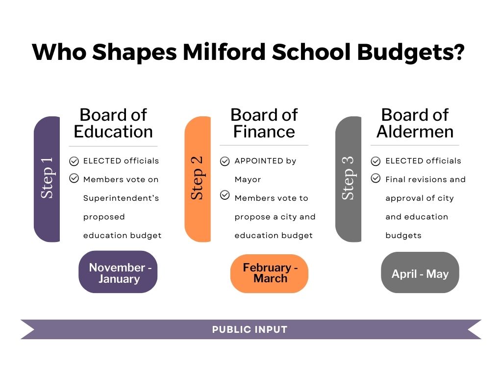 As the 2024-25 Milford education budget is developed and finalized, join us to reinforce key community priorities to officials on the Boards of Education, Finance and Aldermen!